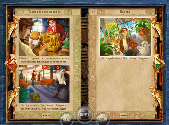 Вам достается в собственность священная книга Детей Солнца, в которой рассказывается об удивительных приключениях коллег-археологов Джона и Линды. История начинается с того, что они получают таинственную посылку - ларец, запертый замком с замысловатым шифром. Джон и Линда открывают ларец и обнаруживают там карты Центральной Америки. Решите все головоломки, дочитайте книгу до конца и разгадайте древнее пророчество!